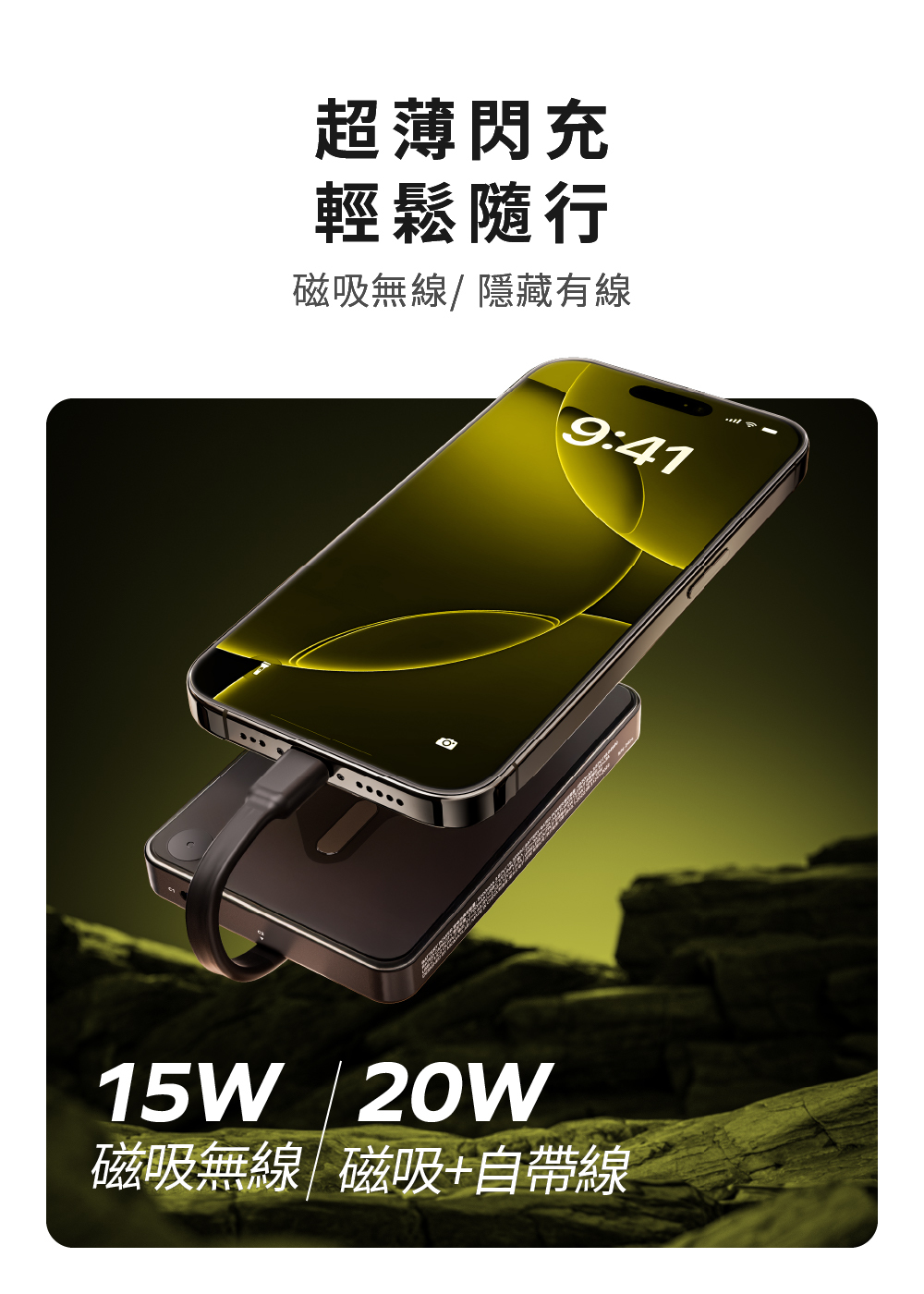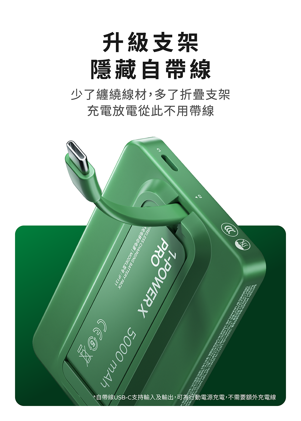 磁吸內建USB-C線行動電源-附支架 x 賴瑞