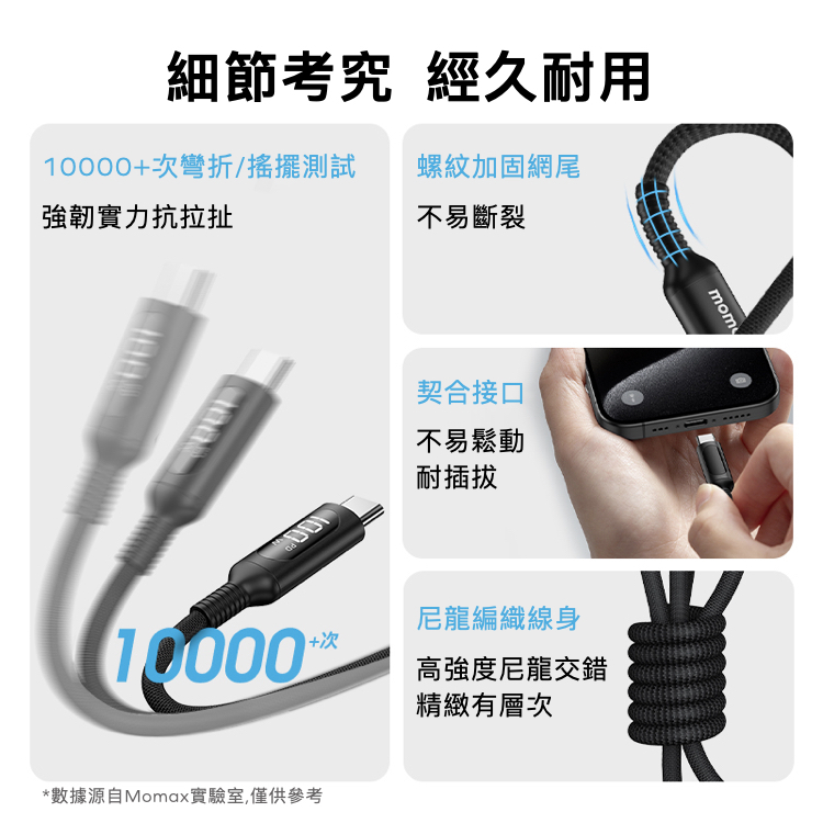 線材堅固耐用,不易折斷,可支援各類型的USB-C裝置使用。