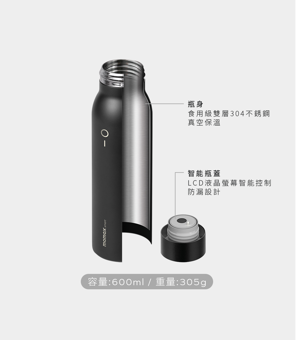 擁有扎實造工和簡約設計的智能保溫水瓶。內建LCD顯示螢幕和環形指示燈顯示水溫,您可以設置飲水提示,為自己建立一個健康的飲水週期。