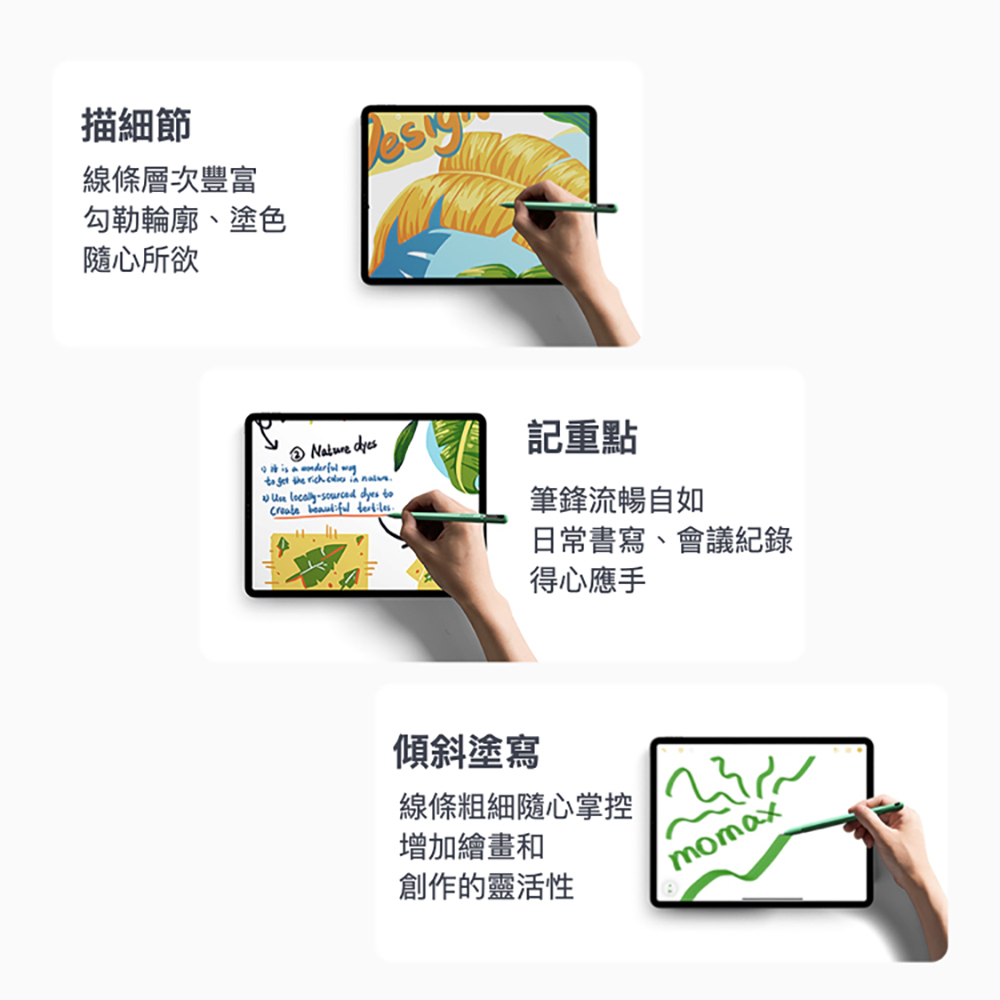 高傾斜度和壓力靈敏度,並支持防手掌誤觸